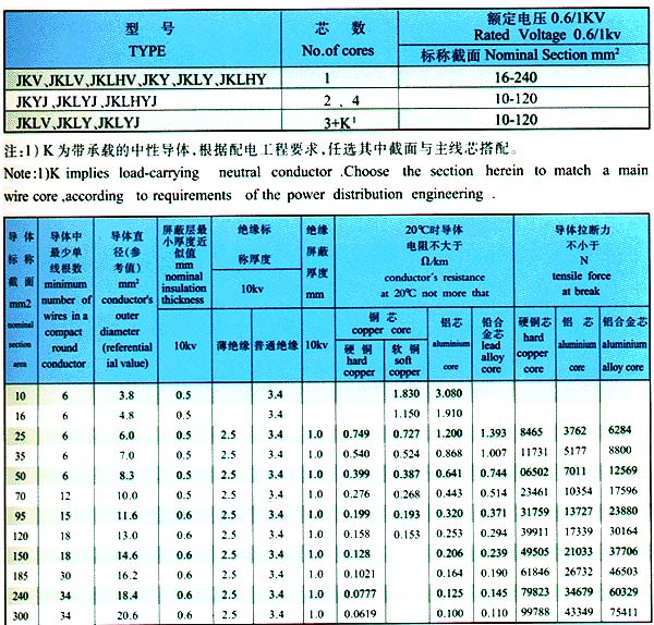 额定电压1KV及以下架空绝缘电缆